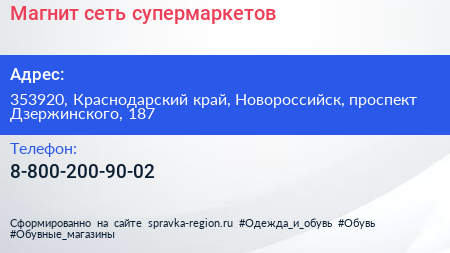 Магнит, сеть супермаркетов по адресу 353920, Краснодарский край, Новороссийск, проспект Дзержинского, 187 в дальнейшем Организация, размещена в следующих категориях: