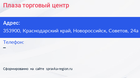 Плаза, торговый центр по адресу 353900, Краснодарский край, Новороссийск, Советов, 24а в дальнейшем Организация, размещена в следующих категориях:
