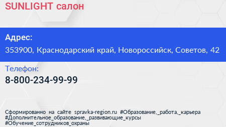SUNLIGHT, салон по адресу 353900, Краснодарский край, Новороссийск, Советов, 42 в дальнейшем Организация, размещена в следующих категориях: