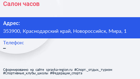 Салон часов по адресу 353900, Краснодарский край, Новороссийск, Мира, 1 в дальнейшем Организация, размещена в следующих категориях: