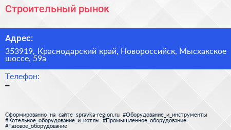Строительный рынок по адресу 353919, Краснодарский край, Новороссийск, Мысхакское шоссе, 59а в дальнейшем Организация, размещена в следующих категориях: