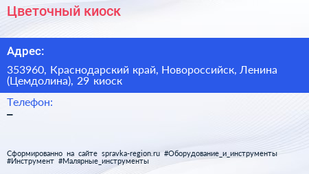 Цветочный киоск по адресу 353960, Краснодарский край, Новороссийск, Ленина (Цемдолина), 29 киоск в дальнейшем Организация, размещена в следующих категориях: