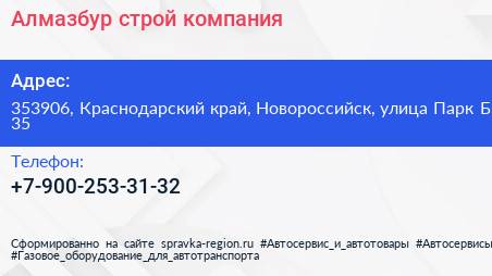 Алмазбур-строй, компания по адресу 353906, Краснодарский край, Новороссийск, улица Парк Б, 35 в дальнейшем Организация, размещена в следующих категориях: