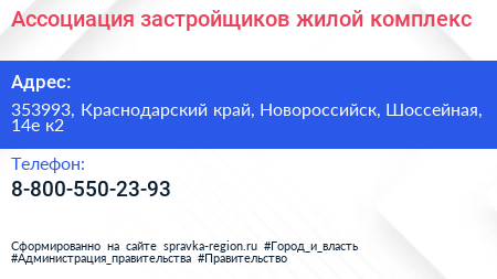 Ассоциация застройщиков, жилой комплекс по адресу 353993, Краснодарский край, Новороссийск, Шоссейная, 14е к2 в дальнейшем Организация, размещена в следующих категориях: