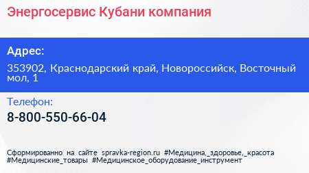 Энергосервис Кубани, компания по адресу 353902, Краснодарский край, Новороссийск, Восточный мол, 1 в дальнейшем Организация, размещена в следующих категориях: