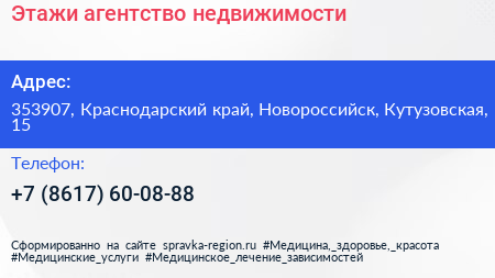 Этажи, агентство недвижимости по адресу 353907, Краснодарский край, Новороссийск, Кутузовская, 15 в дальнейшем Организация, размещена в следующих категориях: