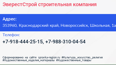 ЭверестСтрой, строительная компания по адресу 353960, Краснодарский край, Новороссийск, Школьная, 1а в дальнейшем Организация, размещена в следующих категориях: