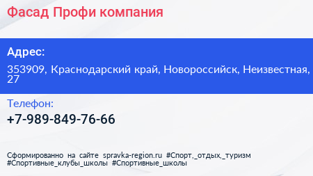 Фасад-Профи, компания по адресу 353909, Краснодарский край, Новороссийск, Неизвестная, 27 в дальнейшем Организация, размещена в следующих категориях: