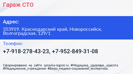 Гараж, СТО по адресу 353919, Краснодарский край, Новороссийск, Волгоградская, 129/1 в дальнейшем Организация, размещена в следующих категориях: