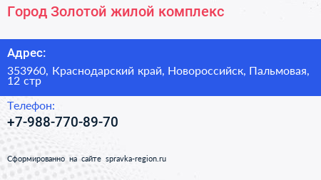 Город Золотой, жилой комплекс по адресу 353960, Краснодарский край, Новороссийск, Пальмовая, 12 стр в дальнейшем Организация, размещена в следующих категориях: