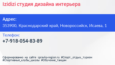 Izidizi, студия дизайна интерьера по адресу 353900, Краснодарский край, Новороссийск, Исаева, 1 в дальнейшем Организация, размещена в следующих категориях: