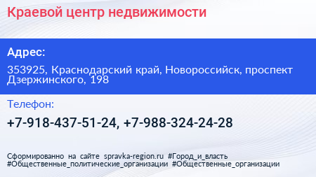 Краевой центр недвижимости по адресу 353925, Краснодарский край, Новороссийск, проспект Дзержинского, 198 в дальнейшем Организация, размещена в следующих категориях: