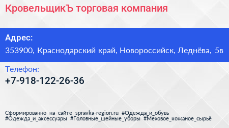 КровельщикЪ, торговая компания по адресу 353900, Краснодарский край, Новороссийск, Леднёва, 5в в дальнейшем Организация, размещена в следующих категориях: