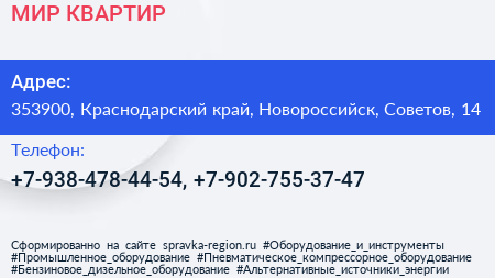 МИР КВАРТИР по адресу 353900, Краснодарский край, Новороссийск, Советов, 14 в дальнейшем Организация, размещена в следующих категориях: