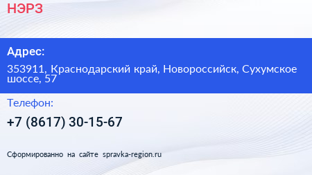 НЭРЗ по адресу 353911, Краснодарский край, Новороссийск, Сухумское шоссе, 57 в дальнейшем Организация, размещена в следующих категориях: