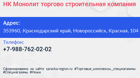 НК-Монолит, торгово-строительная компания по адресу 353960, Краснодарский край, Новороссийск, Красная, 104 в дальнейшем Организация, размещена в следующих категориях: