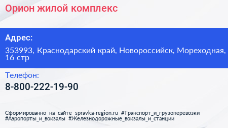 Орион, жилой комплекс по адресу 353993, Краснодарский край, Новороссийск, Мореходная, 16 стр в дальнейшем Организация, размещена в следующих категориях:
