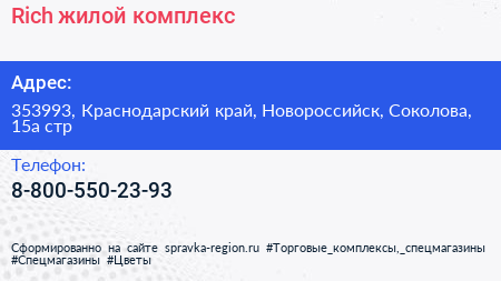 Rich, жилой комплекс по адресу 353993, Краснодарский край, Новороссийск, Соколова, 15а стр в дальнейшем Организация, размещена в следующих категориях: