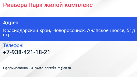 Ривьера Парк, жилой комплекс по адресу Краснодарский край, Новороссийск, Анапское шоссе, 51д стр в дальнейшем Организация, размещена в следующих категориях: