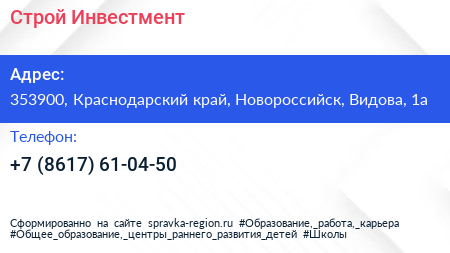 Строй-Инвестмент по адресу 353900, Краснодарский край, Новороссийск, Видова, 1а в дальнейшем Организация, размещена в следующих категориях: