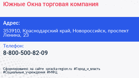 Южные Окна, торговая компания по адресу 353910, Краснодарский край, Новороссийск, проспект Ленина, 23 в дальнейшем Организация, размещена в следующих категориях: