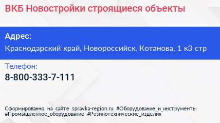 ВКБ-Новостройки, строящиеся объекты по адресу Краснодарский край, Новороссийск, Котанова, 1 к3 стр в дальнейшем Организация, размещена в следующих категориях: