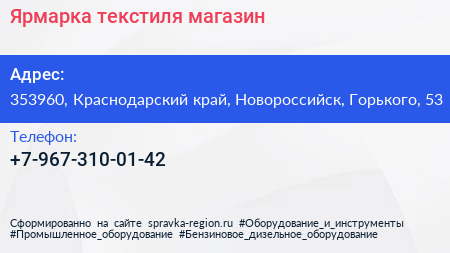 Ярмарка текстиля, магазин по адресу 353960, Краснодарский край, Новороссийск, Горького, 53 в дальнейшем Организация, размещена в следующих категориях: