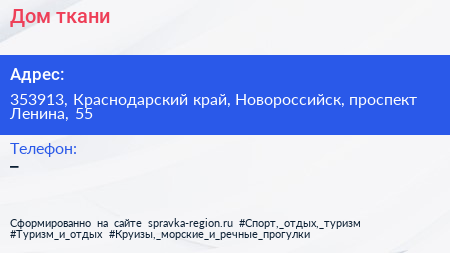 Дом ткани по адресу 353913, Краснодарский край, Новороссийск, проспект Ленина, 55 в дальнейшем Организация, размещена в следующих категориях: