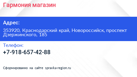Гармония, магазин по адресу 353920, Краснодарский край, Новороссийск, проспект Дзержинского, 185 в дальнейшем Организация, размещена в следующих категориях: