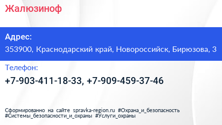 Жалюзиноф по адресу 353900, Краснодарский край, Новороссийск, Бирюзова, 3 в дальнейшем Организация, размещена в следующих категориях: