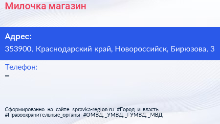 Милочка, магазин по адресу 353900, Краснодарский край, Новороссийск, Бирюзова, 3 в дальнейшем Организация, размещена в следующих категориях: