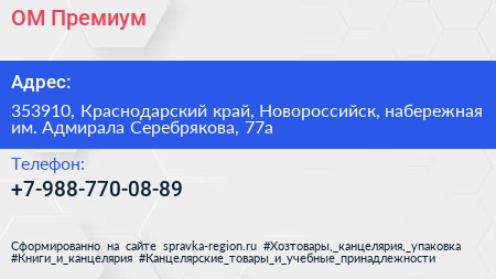 ОМ Премиум. по адресу 353910, Краснодарский край, Новороссийск, набережная им. Адмирала Серебрякова, 77а в дальнейшем Организация, размещена в следующих категориях: