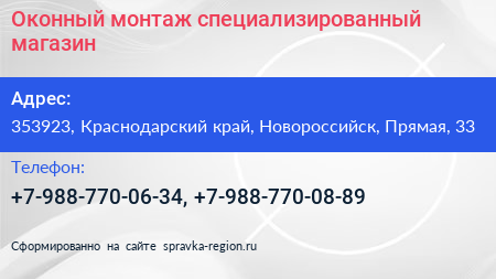Оконный монтаж, специализированный магазин по адресу 353923, Краснодарский край, Новороссийск, Прямая, 33 в дальнейшем Организация, размещена в следующих категориях: