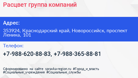 Расцвет, группа компаний по адресу 353924, Краснодарский край, Новороссийск, проспект Ленина, 101 в дальнейшем Организация, размещена в следующих категориях: