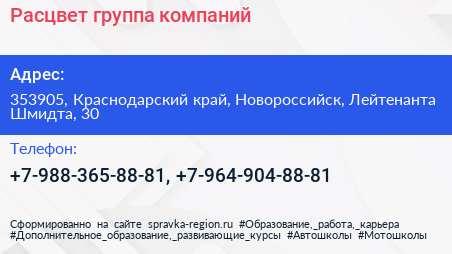 Расцвет, группа компаний по адресу 353905, Краснодарский край, Новороссийск, Лейтенанта Шмидта, 30 в дальнейшем Организация, размещена в следующих категориях: