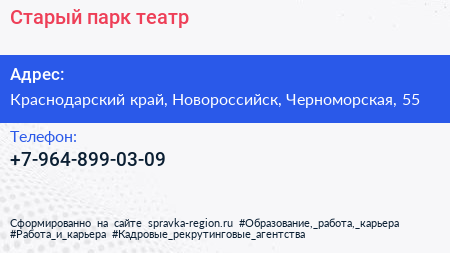 Старый парк, театр по адресу Краснодарский край, Новороссийск, Черноморская, 55 в дальнейшем Организация, размещена в следующих категориях: