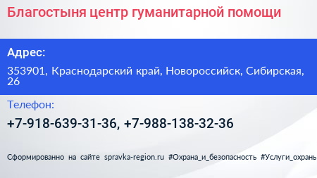 Благостыня, центр гуманитарной помощи по адресу 353901, Краснодарский край, Новороссийск, Сибирская, 26 в дальнейшем Организация, размещена в следующих категориях: