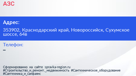 АЗС по адресу 353902, Краснодарский край, Новороссийск, Сухумское шоссе, 64в в дальнейшем Организация, размещена в следующих категориях: