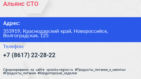 Альянс, СТО по адресу 353919, Краснодарский край, Новороссийск, Волгоградская, 125 в дальнейшем Организация, размещена в следующих категориях: