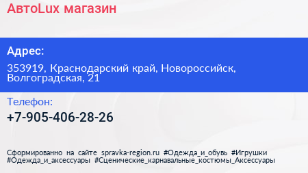 АвтоLux, магазин по адресу 353919, Краснодарский край, Новороссийск, Волгоградская, 21 в дальнейшем Организация, размещена в следующих категориях: