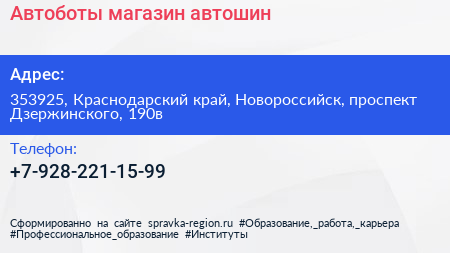 Автоботы, магазин автошин по адресу 353925, Краснодарский край, Новороссийск, проспект Дзержинского, 190в в дальнейшем Организация, размещена в следующих категориях: