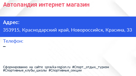 Автоландия, интернет-магазин по адресу 353915, Краснодарский край, Новороссийск, Красина, 33 в дальнейшем Организация, размещена в следующих категориях: