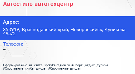 Автостиль, автотехцентр по адресу 353919, Краснодарский край, Новороссийск, Куникова, 49а/2 в дальнейшем Организация, размещена в следующих категориях: