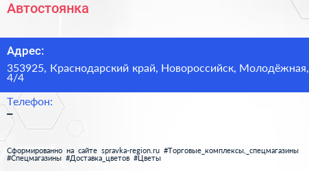 Автостоянка по адресу 353925, Краснодарский край, Новороссийск, Молодёжная, 4/4 в дальнейшем Организация, размещена в следующих категориях: