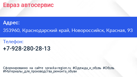 Евраз, автосервис по адресу 353960, Краснодарский край, Новороссийск, Красная, 93 в дальнейшем Организация, размещена в следующих категориях: