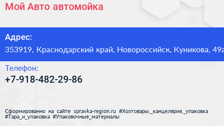 Мой Авто, автомойка по адресу 353919, Краснодарский край, Новороссийск, Куникова, 49а в дальнейшем Организация, размещена в следующих категориях:
