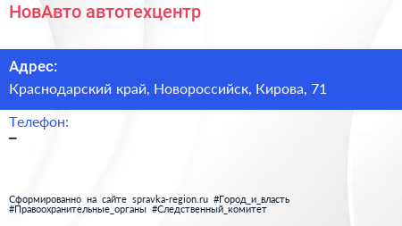 НовАвто, автотехцентр по адресу Краснодарский край, Новороссийск, Кирова, 71 в дальнейшем Организация, размещена в следующих категориях: