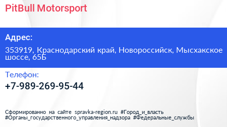 PitBull Motorsport по адресу 353919, Краснодарский край, Новороссийск, Мысхакское шоссе, 65Б в дальнейшем Организация, размещена в следующих категориях: