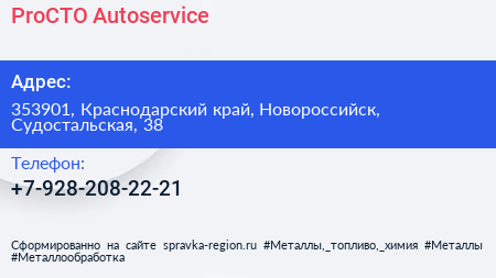 ProСТО Autoservice по адресу 353901, Краснодарский край, Новороссийск, Судостальская, 38 в дальнейшем Организация, размещена в следующих категориях: