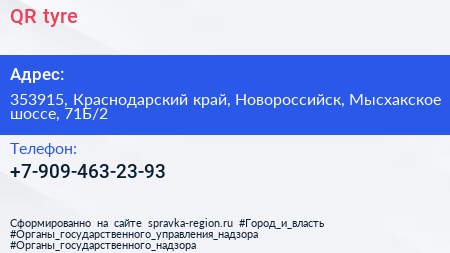 QR tyre по адресу 353915, Краснодарский край, Новороссийск, Мысхакское шоссе, 71Б/2 в дальнейшем Организация, размещена в следующих категориях: